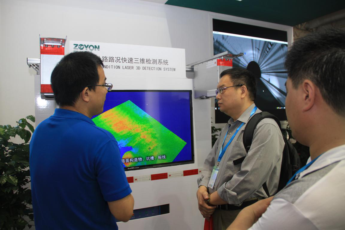 武大卓越是首家采用路况三维快速检测系统的企业,并在展示期间进行了展示。路况三维快速检测系统完成对破损、车辙、平整度 、拥包、沉陷、错台、检测井和松散等病害检测,实现真正意义上的病害自动识别,同时提供病害区域定位、病害深度测量、面积及体积计算、病害严重程度评估功能。