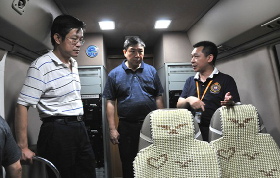 图2:杨跃承副主任(中)检测车内参观