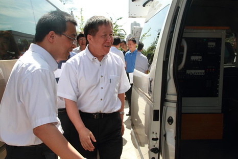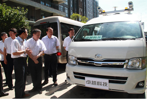 卓越科技副总裁张德津博士向曹健林副部长一行介绍智能道路检测系统