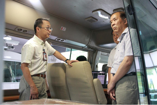 曹民先生简要介绍了卓越科技的企业现状以及技术创新,特别是国内首台世界第二台的激光动态弯沉系统和国家重点新产品智能道路检测系统。汇报过程中,夏建民副巡视员饶有兴致的登上卓越科技智能道路检测系统,观看其设备组成及软件演示,亲身感受卓越科技的最新技术成果。