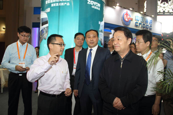 交通部副部长、中国公路学会理事长胡希捷(左四)一行领导莅临卓越科技展台随行领导